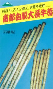 岩手県は昔、南部と呼ばれ、北上川の肥沃な沖積土壌で栽培されて普及した、白肌系の大長牛蒡です。